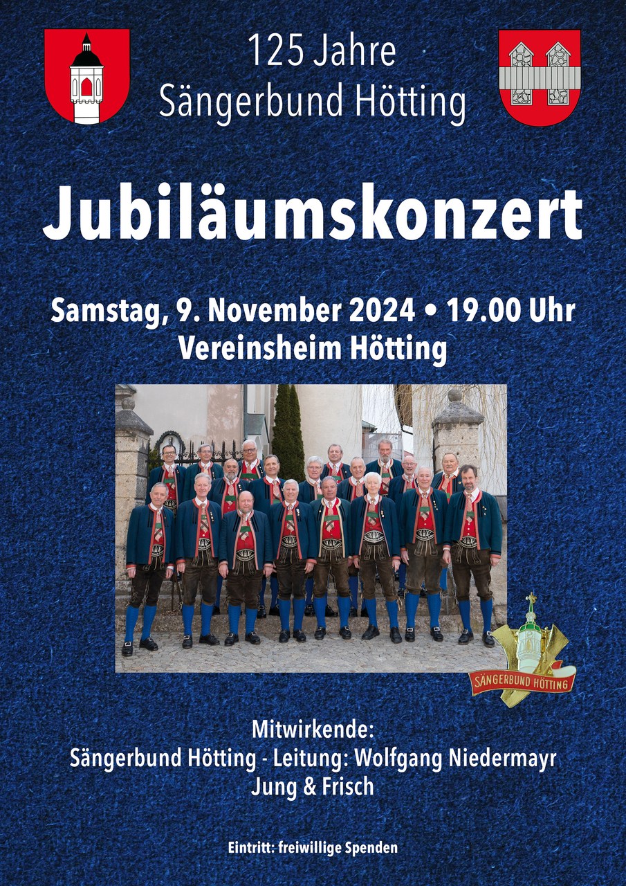 Am 9. November 2024, um 19 Uhr, lädt der Sängerbund Hötting gemeinsam mit dem Fraueninstrumentalensemble „Jung & Frisch“ im Vereinsheim Hötting zum 125-Jahre-Jubiläumskonzert.